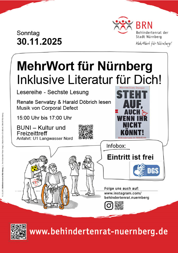 SUN 30.11.25 begleiten wir musikalisch eine Lesung aus Lesereihe des Behindertenrats Nürnberg.